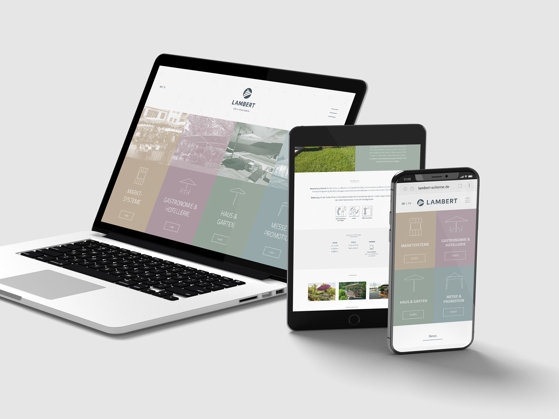 Logo and homepage design for a medium-sized umbrella and market system manufacturer/dealer. In addition to the classic corporate design, I also conceived and designed a comprehensive homepage.