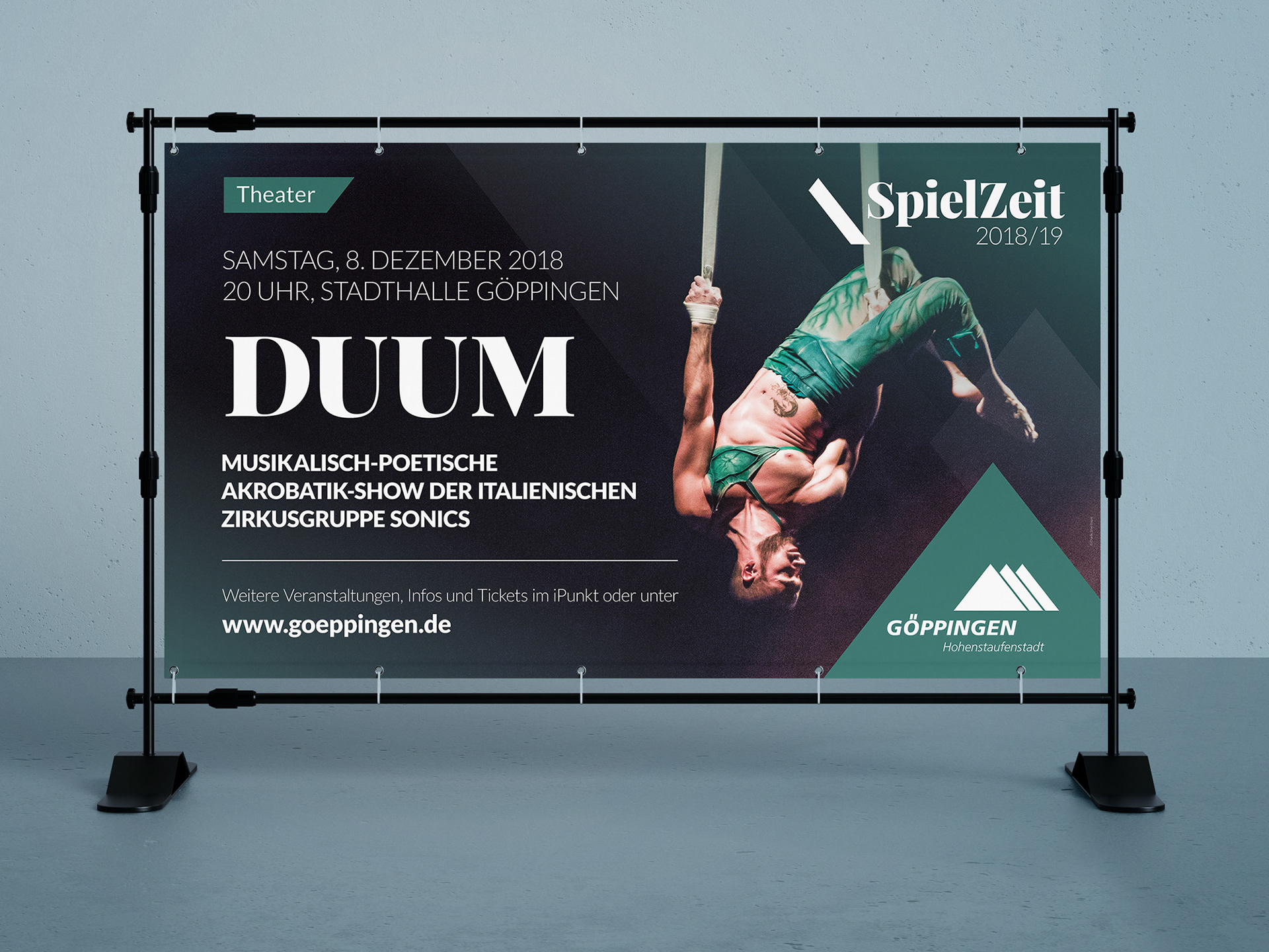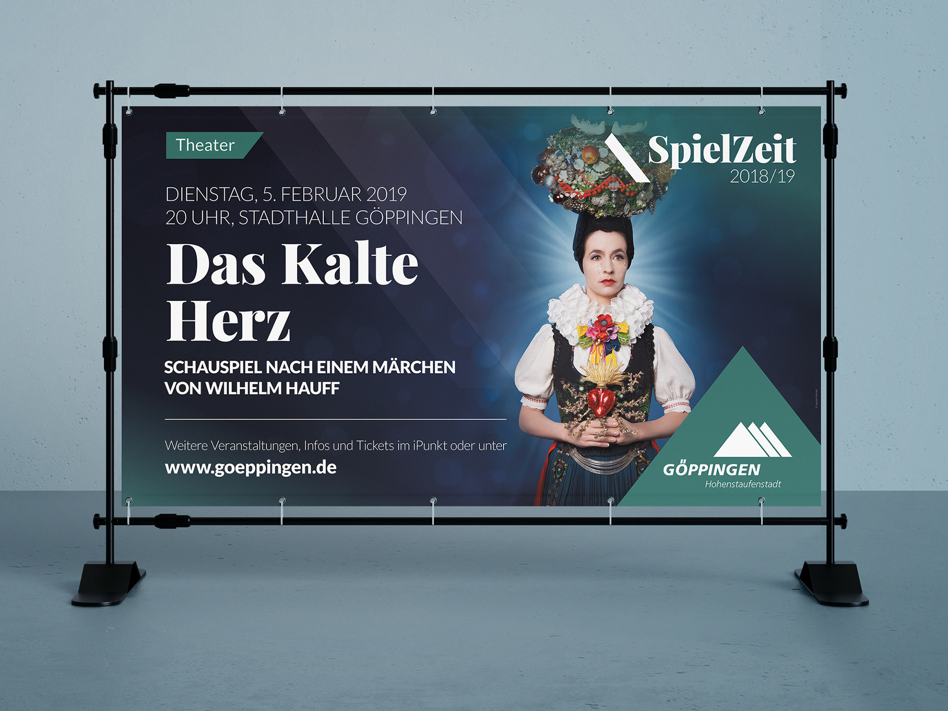 Der Relaunch der "Spielzeit"-Broschüre für die Stadt Göppingen. Die mehr als 60-seitige Broschüre enthält nahezu alle kulturellen Veranstaltungen der Stadt. Dank des schnellen Inputs des Kunden konnte die Broschüre in nur zwei Wochen fertiggestellt werden. Zusätzlich gab es großformatige Banner zu den Highlights an den Stadteingängen.